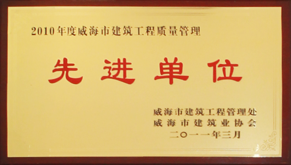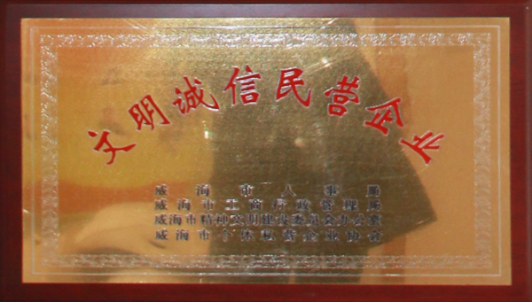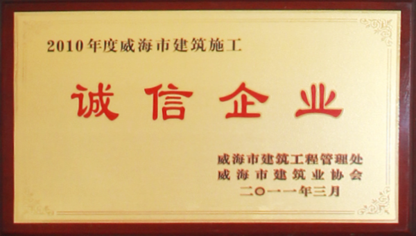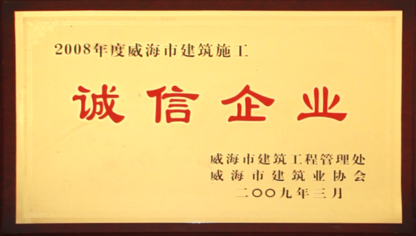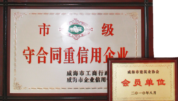 公司連續(xù)八年榮獲威海市“誠(chéng)信開(kāi)發(fā)企業(yè)”、“建筑施工誠(chéng)信企業(yè)”,連續(xù)九年被評(píng)為威海市級(jí)“守合同重信用企業(yè)”,多次被評(píng)為威海市“市級(jí)文明單位”、“質(zhì)量管理先進(jìn)企業(yè)”、 “安全管理先進(jìn)企業(yè)”,乳山市“優(yōu)秀企業(yè)”、“先進(jìn)民營(yíng)企業(yè)”、“納稅明星企業(yè)”,在社會(huì)上逐步樹立了誠(chéng)信、穩(wěn)健的企業(yè)形象。